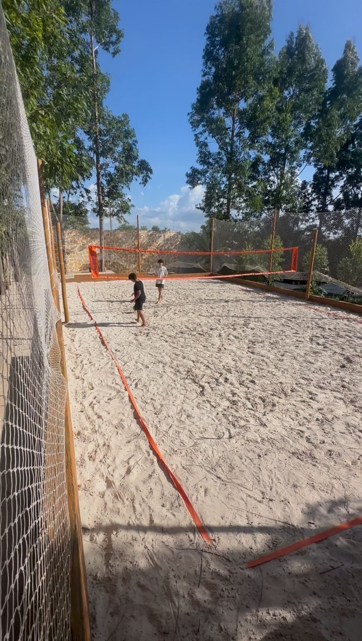 - Quadra de areia dimensão oficial, mesas e cadeiras para 80 pessoas